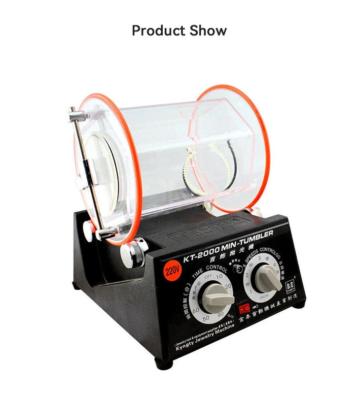 La polisseuse de bijoux est équipée d'un tambour en verre de 600 grammes, ce qui permet de polir un grand nombre de bijoux à la fois. Cela la rend idéale pour polir plusieurs bijoux en une seule fois, ce qui en fait un outil efficace et permettant de gagner du temps. La taille de la machine, qui est de 180 mm, la rend également adaptée au polissage d'une large gamme de tailles et de formes de bijoux.